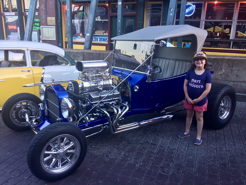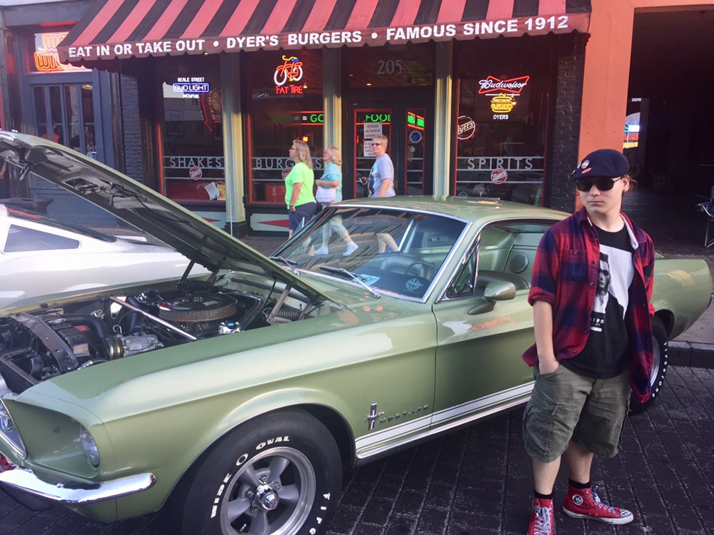 We drove to Memphis from St. Louis today, and it is over 100 degrees here. We ate at a local farm-to-table restaurant and drove around for a while. We went to the Memphis Pyramid, which is pretty much a Bass Pro Shop with a hotel and a big elevator in the middle to go up to the top, where there was a look out. We tried to go to a park, but it was closed. It felt like the night would be a bust, but we drove by Beale Street and they had a car show! The sun was going down, so it dropped into the 90s and in the shade with a breeze, it was actually pretty comfortable. Here’s Beale Street tonight: