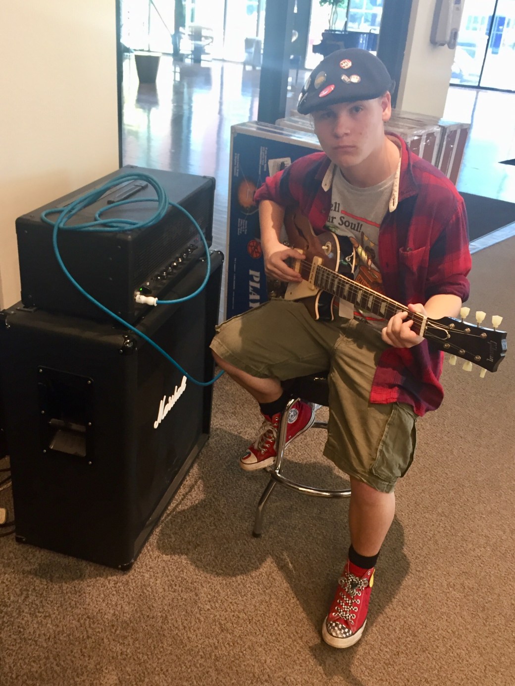 Anders made quite the impression on the woman who gave the tours (who is also a scraper in the factory), so she pulled down the Lucille for him to play: