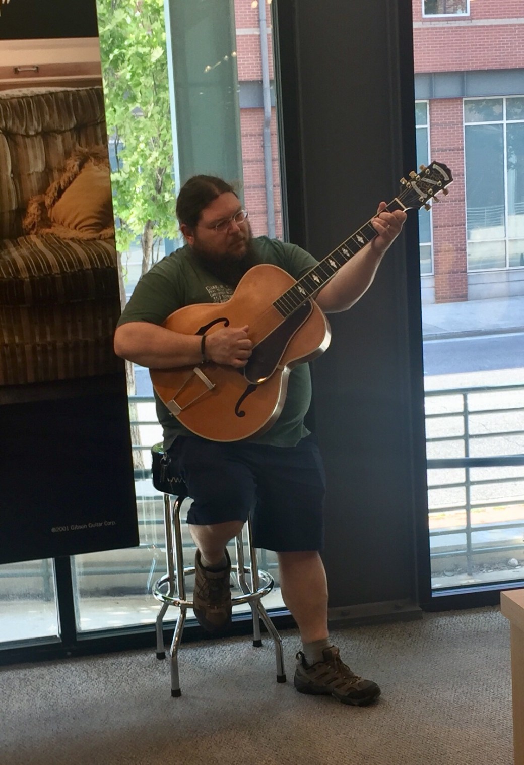 I love Memphis still, but it’s so hot here. Thank goodness there are so many air conditioned places to rest. We started by driving by Graceland, which is actually just a couple miles from our hotel. We didn’t take the tour because we had other important sights to see today. Instead, we went to our Gibson Guitar Factory tour, which was fascinating. We weren’t allowed to take any pictures in the actual factory where everything is made, but we did get to play with the guitars (and ukulele) in the factory shop.
