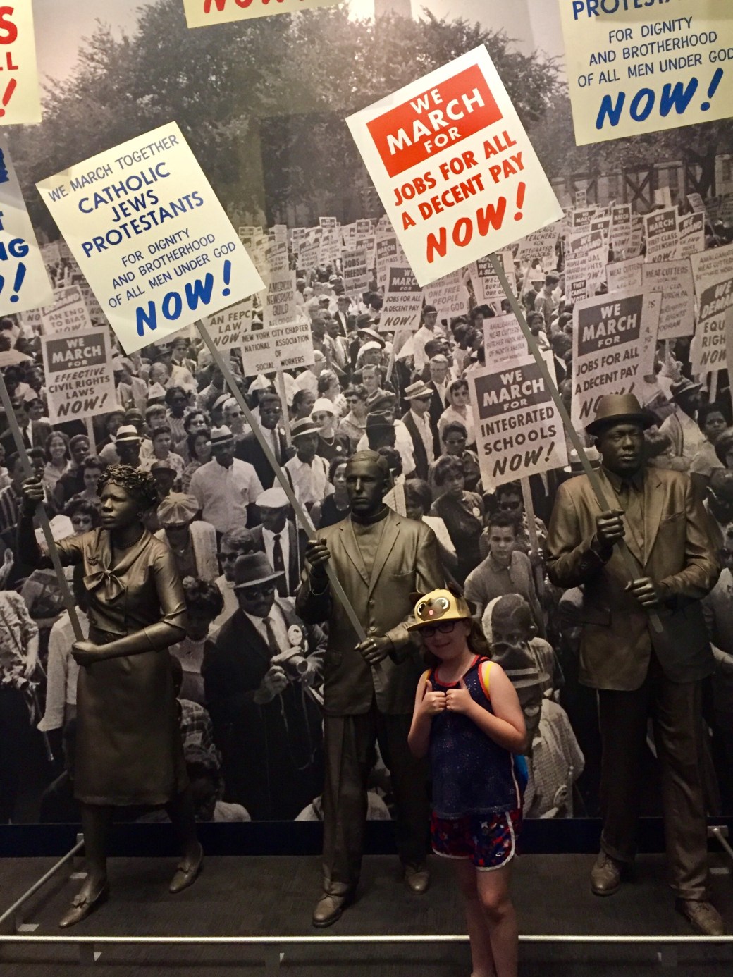 I’m still processing all my thoughts and feelings from this experience – for those who don’t know, this is the motel where Martin Luther King Jr. was assassinated. The museum takes the visitor through the major events of the Civil Rights movement, complete with video, audio, artifacts, and the actual rooms and balcony where King spent his final days and hours. Needless to say, the visit was emotional; I cried a number of times. Some parts were difficult to explain to my daughter, who asked things like “why did the bus get burned?” She took a lot of pictures with her little camera; I’ll try to share some when we get back and upload them to the computer.