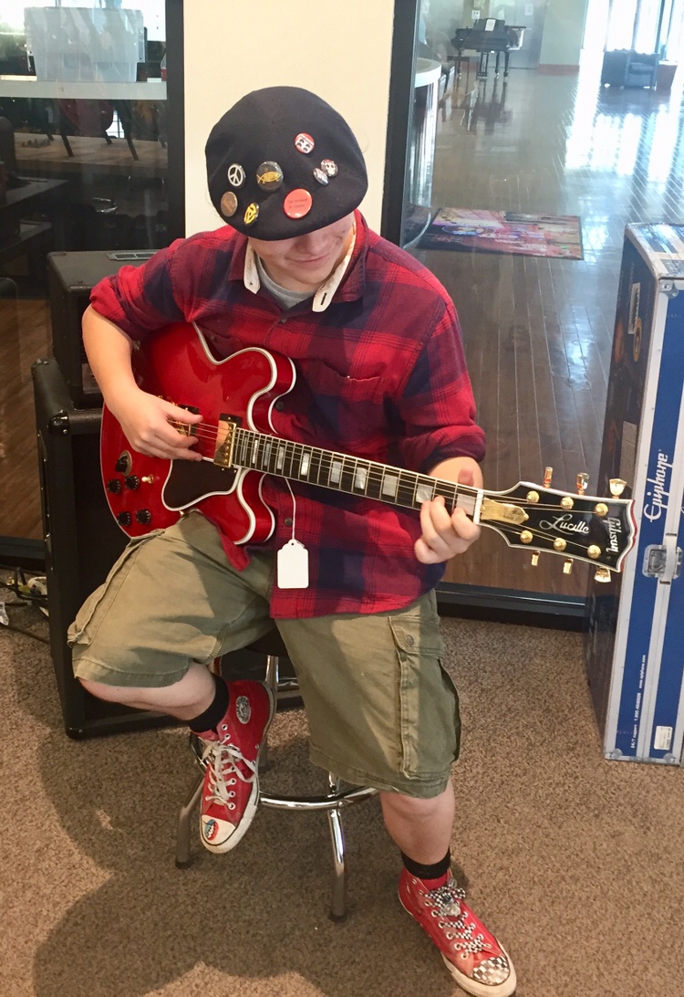 Anders made quite the impression on the woman who gave the tours (who is also a scraper in the factory), so she pulled down the Lucille for him to play: