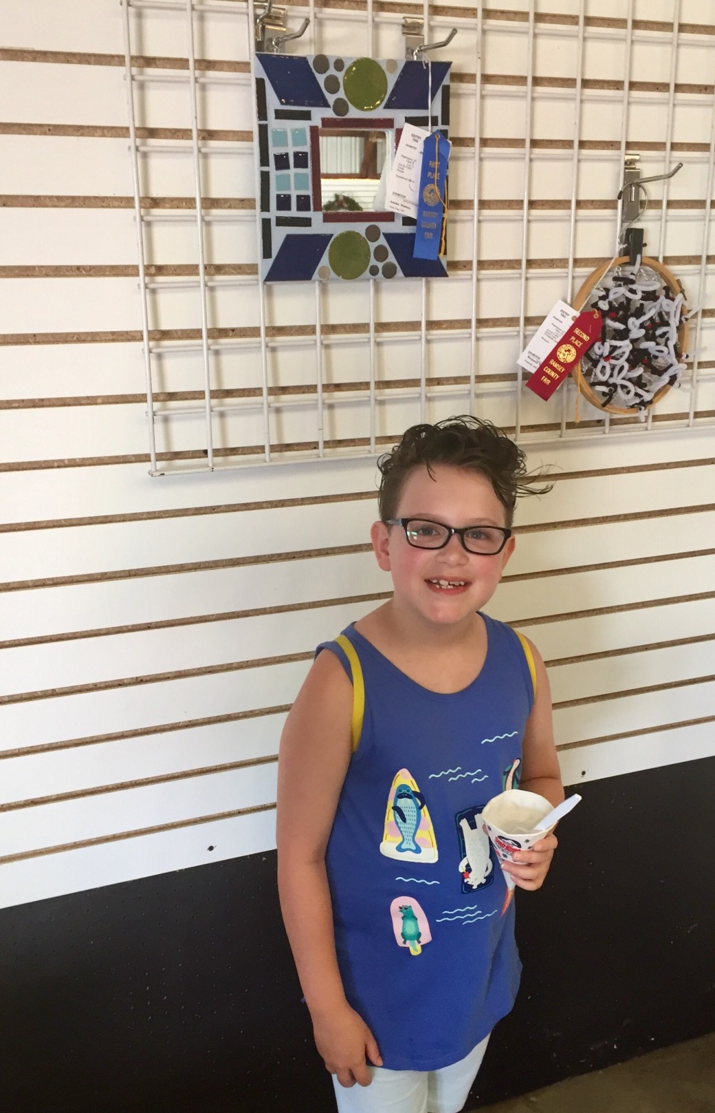 We went to the Ramsey County Fair and did the rides, then ate ice because we overheated, then went and saw that Annika won first place with her mosaic in the exhibit hall!