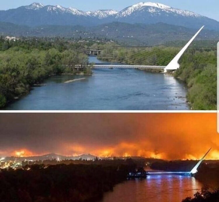 Redding, a town of almost 100,000 people, is burning today in Northern California. Hundreds have lost their homes, a few have lost their lives. The pictures are devastating – this article has quite a few.