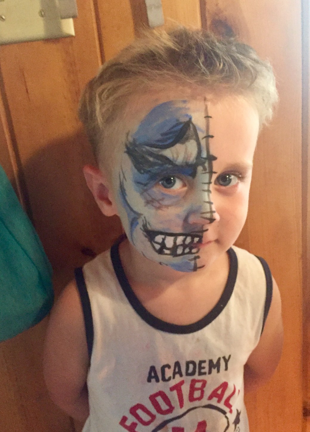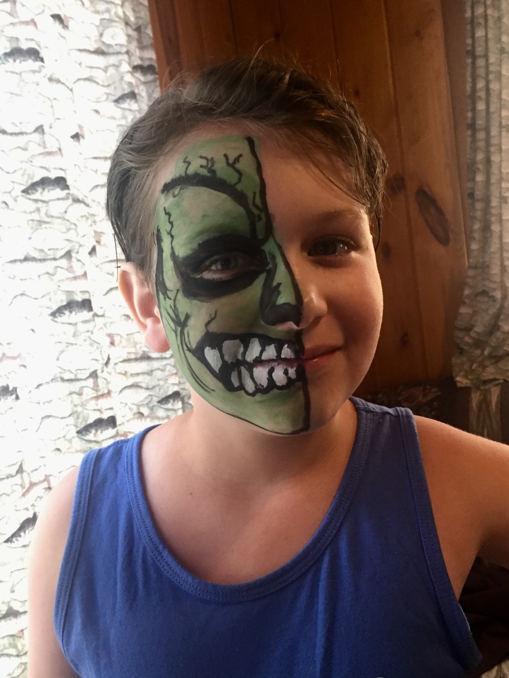 Today I painted more faces. The half-face monster and minion mouth were pretty popular.